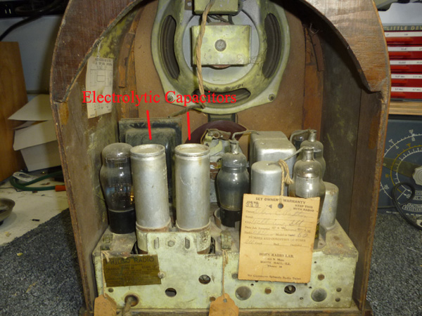 Vintage electrolytics were made from metal tubes which contained a liquid electrolyte. These almost always dry out