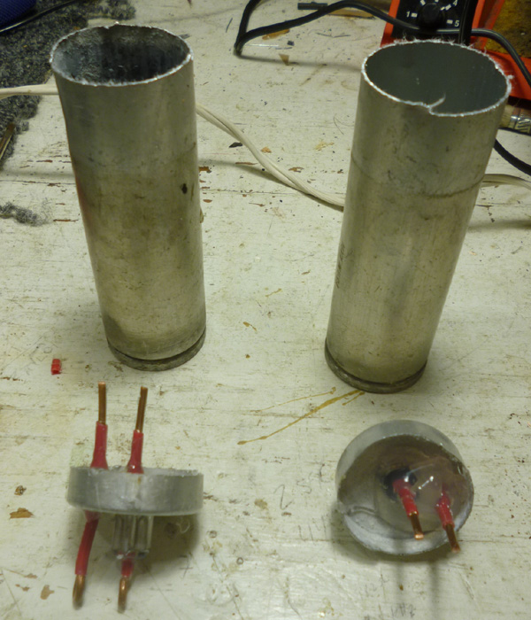 a small hole in the bottom of the can, and by removing the original positive electrode connection. I then attach short segments