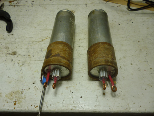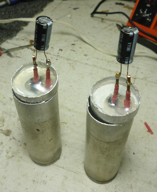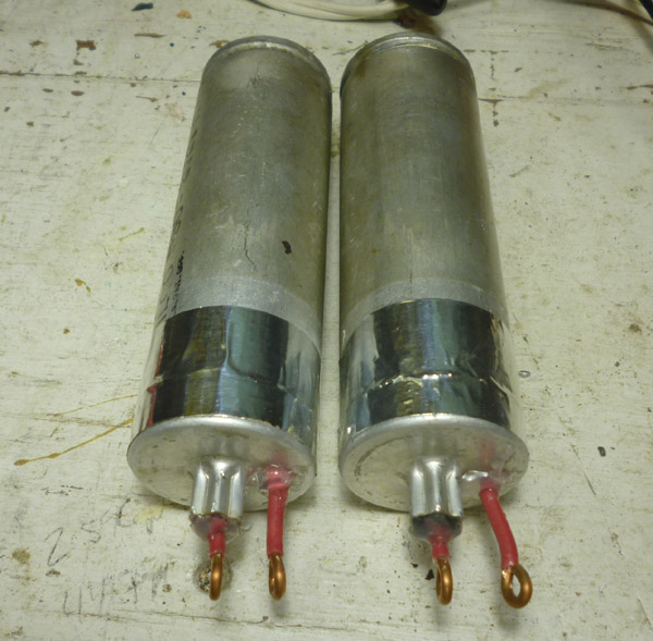 The rebuilt capacitor is now ready for mounting in the chassis. The original negative terminal soldering points can be